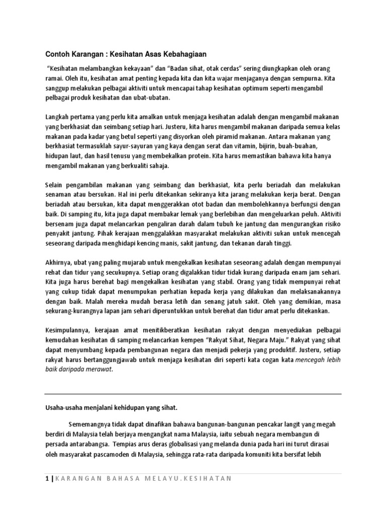 Ia dapat menolong tubuh dan minda kita untuk bekerja dengan baik dan menyumbang kepada. Menyediakan perkhidmatan perubatan yang cekap. Karangan Bahasa Melayu merangkumi pelbagai tema dan tajuk yang berpotensi untuk menjadi soalan.