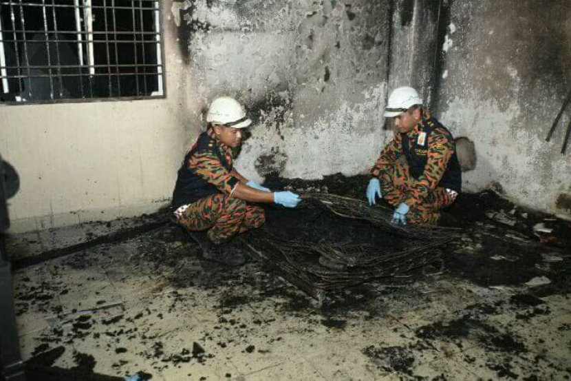 Menurut Ketua Pengarah JBPM Datuk Wan Mohd Nor Ibrahim dua dari kiri petrol terbabit telah dicurahkan di rak tuala dan kasut serta dinding di hadapan pintu masuk asrama di aras 3 bangunan terbabit. Apabila ada unsur khianat maka ia sudah melibatkan jenayah. Utusan Malaysia in Malay.